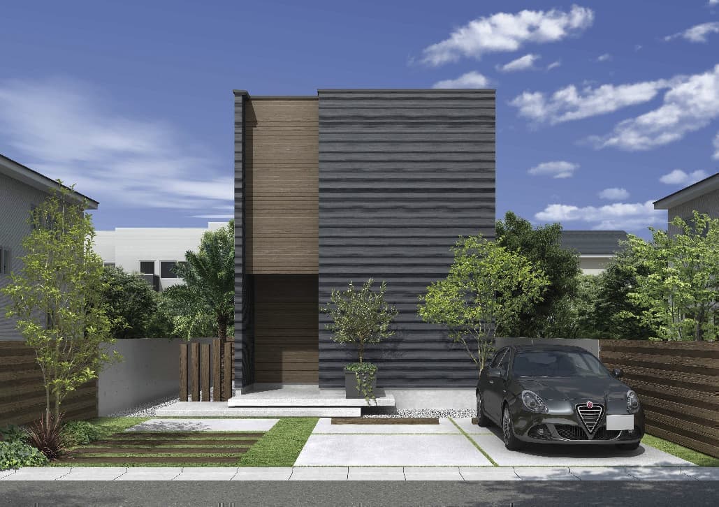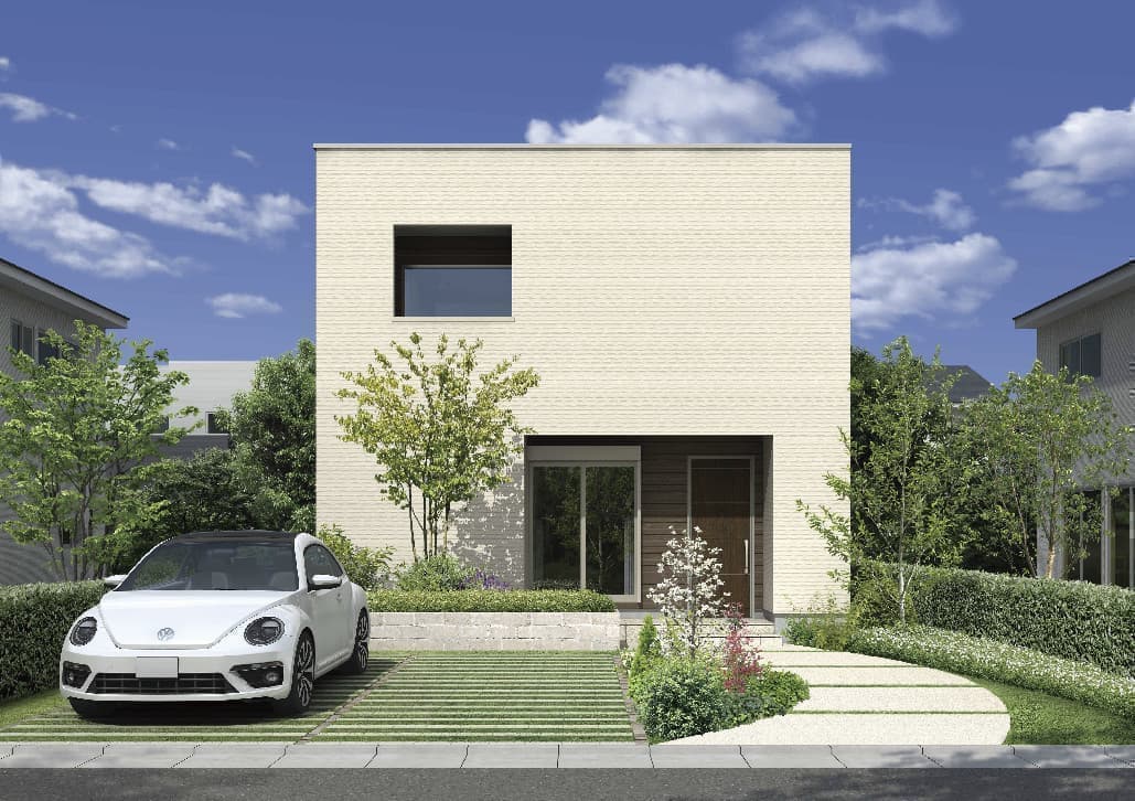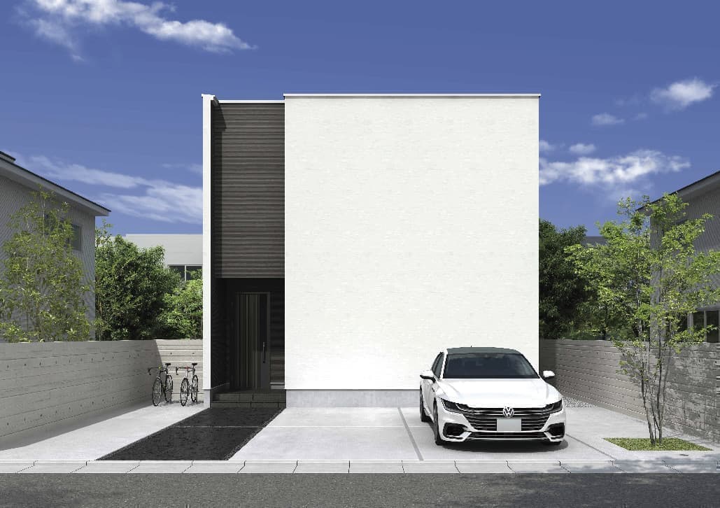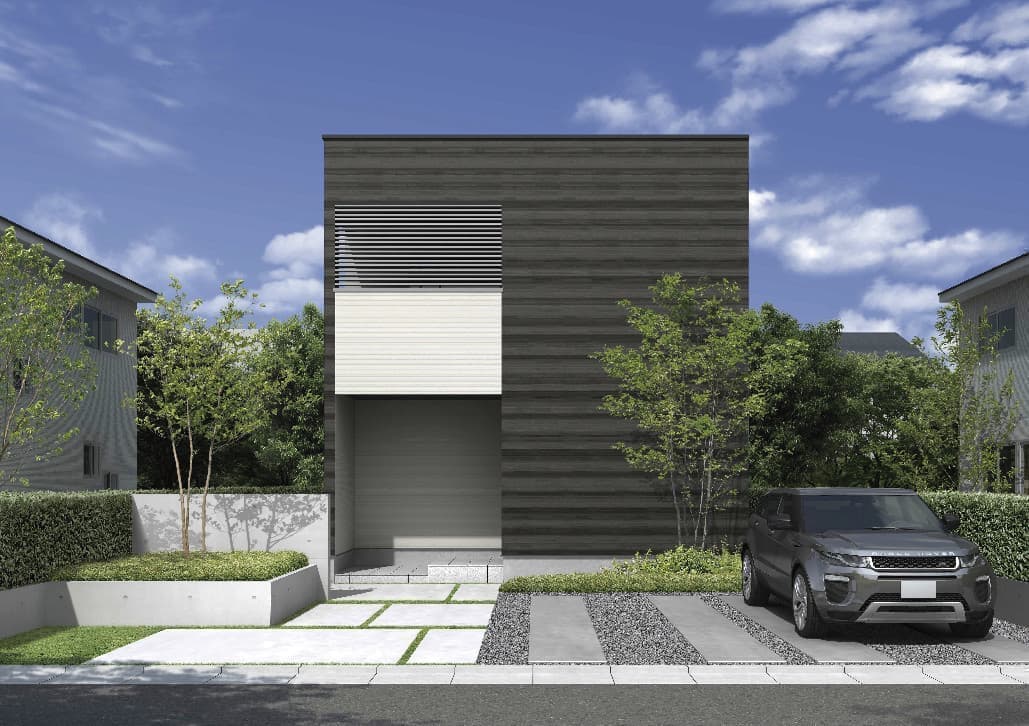 余計な要素をそぎ落とした外観。前面の窓を少なくし外からの視線を遮りプライバシーにも配慮