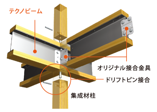 パナソニック耐震住宅工法「テクノストラクチャー」は、木造住宅の良さを生かしながら、構造の要となる梁を鉄で強化したオリジナル工法。耐震等級は最高ランクの「3」に対応しています。テクノビームも最高ランクの劣化対策等級「3」の基準をクリア。加えて30年後のたわみが木製梁の1/4以下※と、高い耐久性を示しています。また、一般的な1・2階建ての木造住宅には義務付けられていない緻密な構造計算を独自システムを用いて全棟に対して行い、設計段階で地震や台風などの災害、積雪など荷重による建物へのダメージを計算し万一の災害にも備えています。現在、全国約400社のパナソニックビルダーズグループ加盟店やテクノストラクチャー工法採用ビルダーを通じて供給されています。