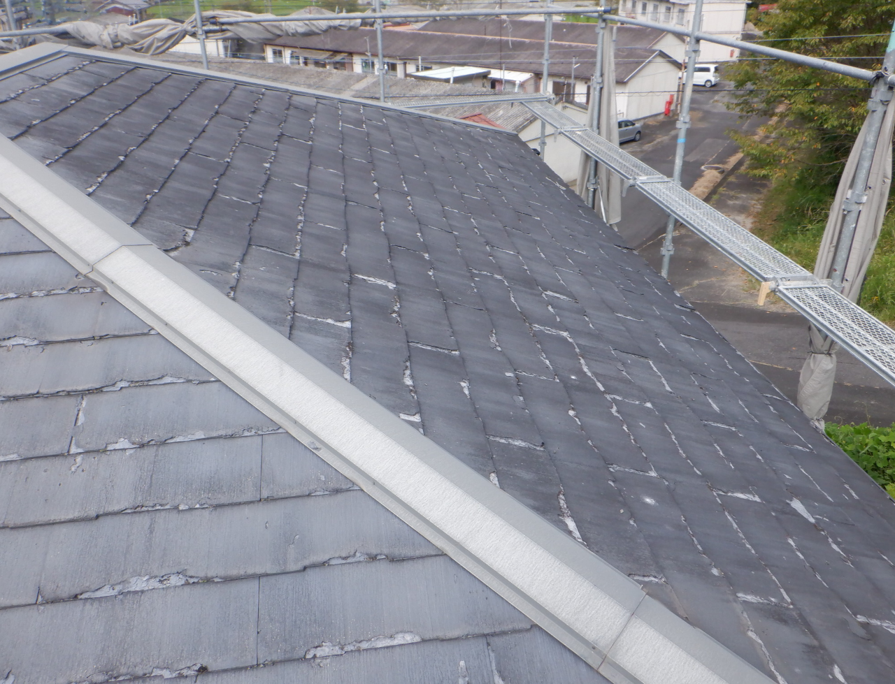 屋根のスレートの経年劣化により金属への葺き替え工事を行いました。